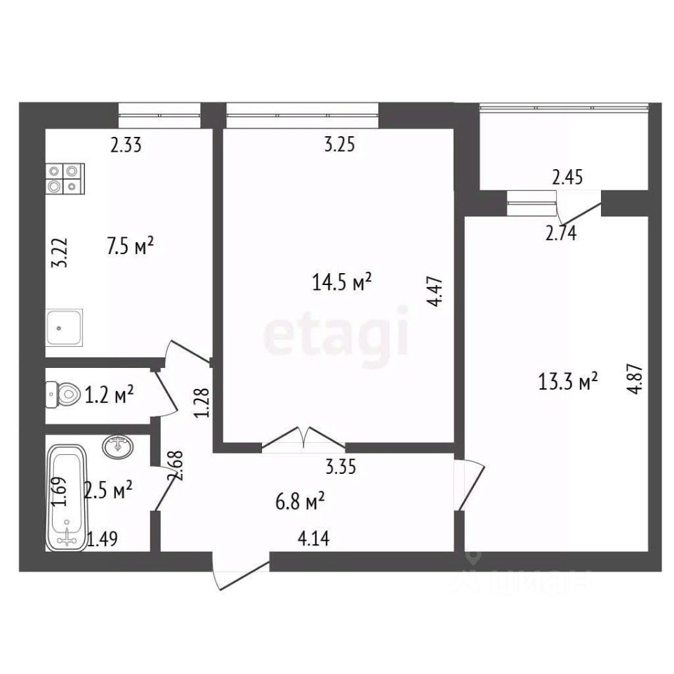 Санузел совмещенный, оснащен современной сантехникой и стиральной машиной. Дополнительное полезное пространство предоставляет утепленная лоджия, которую можно использовать как зону отдыха или для хранения.