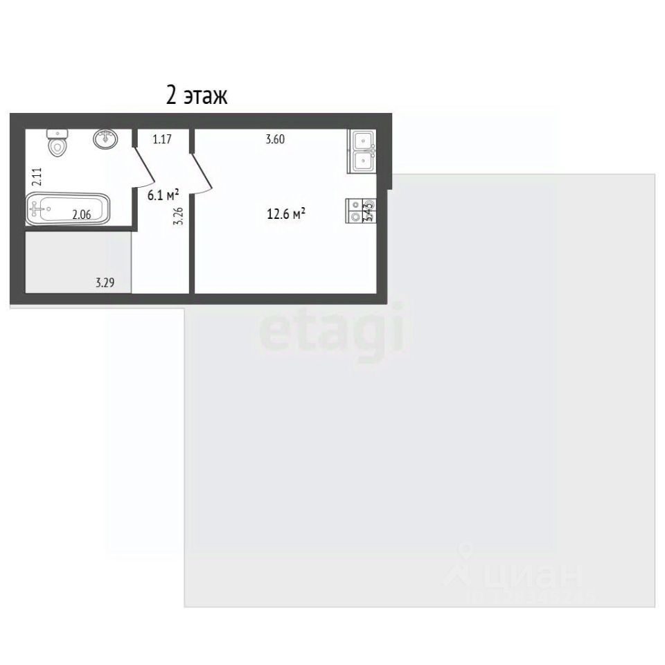 - на втором уровне расположены кухня площадью 12.6 кв.м., лестничный холл и совмещенный санузел.