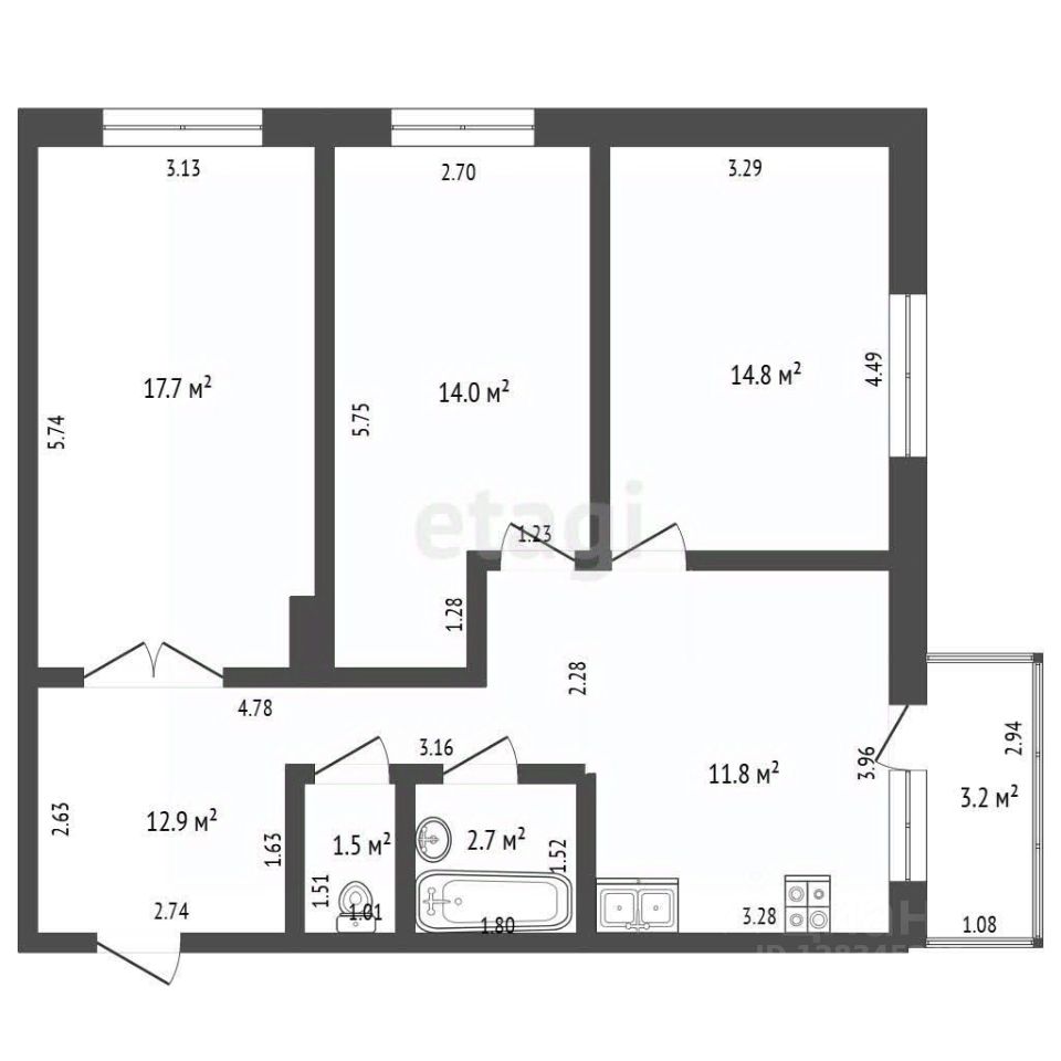 Планировка: три изолированные комнаты и просторная кухня. Балкон с замечательным панорамным видом (красивые закаты, церковь, откос). Максимально удачное использование квадратных метров.