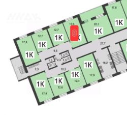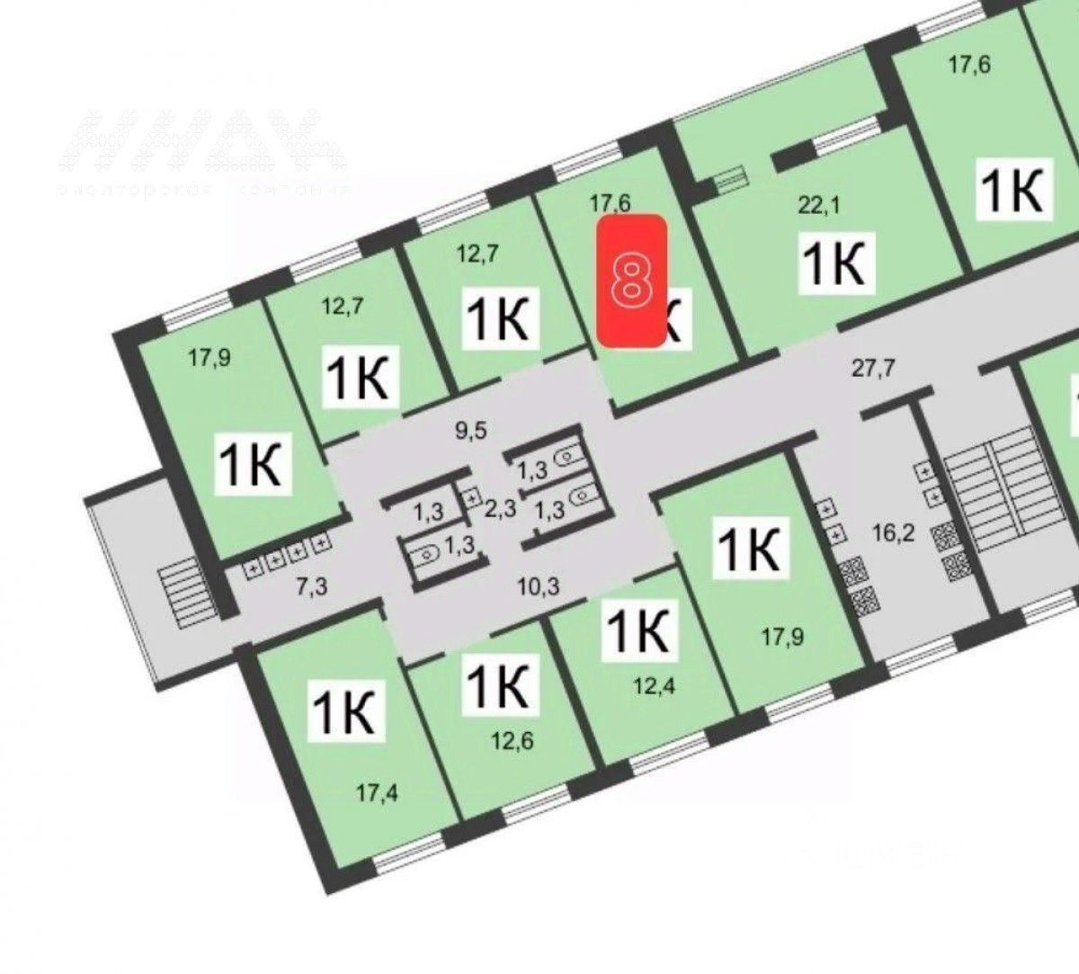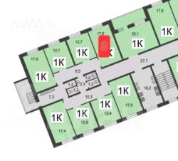 На этаже - 8 комнат.