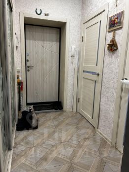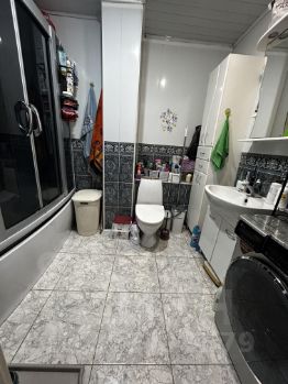 Совместный большой санузел, с большой душевой кабиной. В комнатах - ламинат, в прихожей и ванной - плитка.