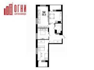 Семейные планировки от 66,2 м² 3 комнаты + балкон