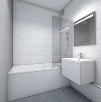 В жилых комнатах, кухне и прихожей — обои нейтрального оттенка, белые межкомнатные двери без стекол. Пол в жилых комнатах — ламинат под дуб, в кухне и прихожей — плитка. Натяжные потолки во всех помещениях. Стены и пол в ванной и санузле будут отделаны керамогранитом, в ванной установлен полный комплект сантехники, включая акриловую ванну с экраном и смесителем, тумбу для хранения под раковиной, зеркало с подсветкой. Застройщик также позаботился и о деталях, поэтому все инженерные коммуникации, стояки водоснабжения и канализации будут скрыты декоративными коробами. #zmeF6f