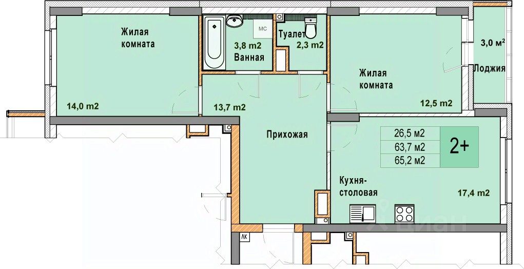 Просторная 2-комн. квартира с отделкой в ЖК "Кузнечиха город" на 7 этаже. Общая площадь: 65.2 кв.м. Высота потолков 2.7 м.