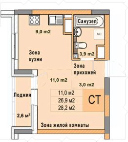 Однокомнатная квартира-студия от застройщика с отделкой в ЖК "Кузнечиха город" на 11 этаже. Общая площадь: 28.2 кв.м. Высота потолков 2.7 м.