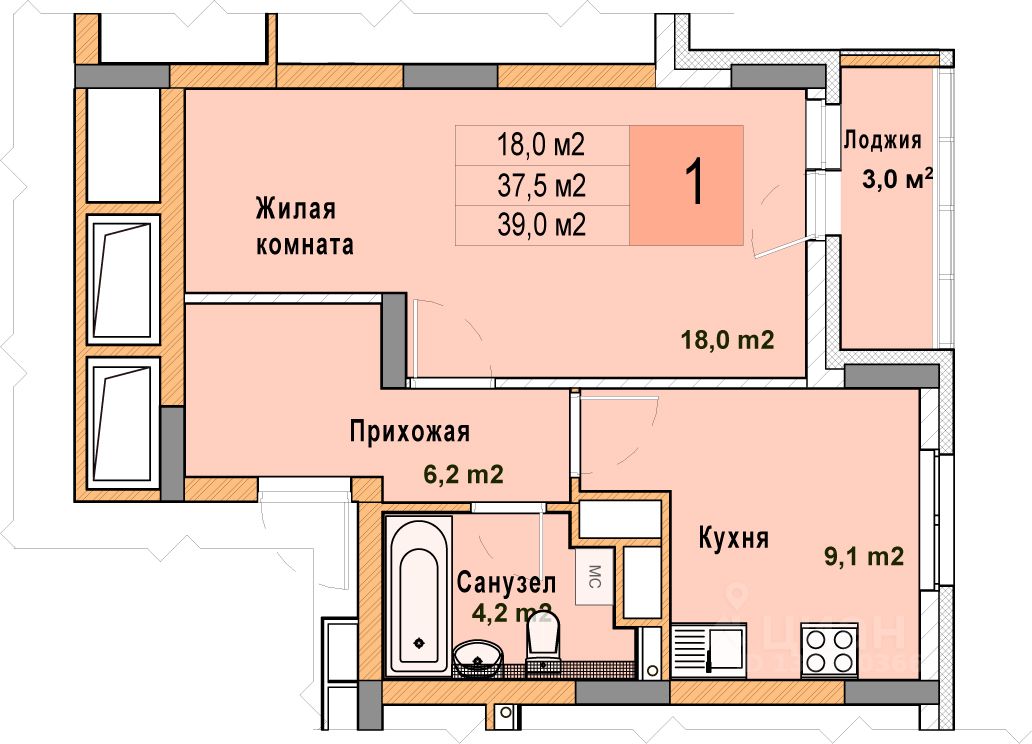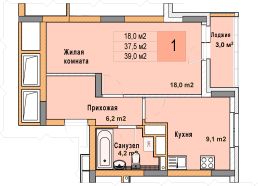 Просторная 1-комн. квартира с отделкой в ЖК "Кузнечиха город" на 15 этаже. Общая площадь: 39 кв.м. Высота потолков 2.7 м.