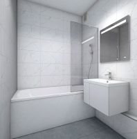 В жилых комнатах, кухне и прихожей — обои нейтрального оттенка, белые межкомнатные двери без стекол. Пол в жилых комнатах — ламинат под дуб, в кухне и прихожей — плитка. Натяжные потолки во всех помещениях. Стены и пол в ванной и санузле будут отделаны керамогранитом, в ванной установлен полный комплект сантехники, включая акриловую ванну с экраном и смесителем, тумбу для хранения под раковиной, зеркало с подсветкой. Застройщик также позаботился и о деталях, поэтому все инженерные коммуникации, стояки водоснабжения и канализации будут скрыты декоративными коробами. #2MeFCC