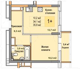 1-комн. квартира с отделкой в ЖК "Кузнечиха город" на 17 этаже. Общая площадь: 35.8 кв.м. Высота потолков 2.7 м.