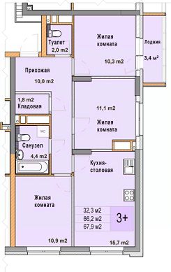 3-комн. квартира с отделкой в ЖК "Кузнечиха город" на 17 этаже. Общая площадь: 67.9 кв.м. Высота потолков 2.7 м.