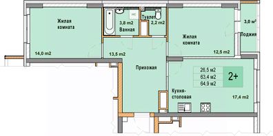 Просторная 2-комн. квартира с отделкой в ЖК "Кузнечиха город" на 18 этаже. Общая площадь: 64.9 кв.м. Высота потолков 2.7 м.