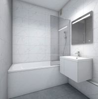 В жилых комнатах, кухне и прихожей — обои нейтрального оттенка, белые межкомнатные двери без стекол. Пол в жилых комнатах — ламинат под дуб, в кухне и прихожей — плитка. Натяжные потолки во всех помещениях. Стены и пол в ванной и санузле будут отделаны керамогранитом, в ванной установлен полный комплект сантехники, включая акриловую ванну с экраном и смесителем, тумбу для хранения под раковиной, зеркало с подсветкой. Застройщик также позаботился и о деталях, поэтому все инженерные коммуникации, стояки водоснабжения и канализации будут скрыты декоративными коробами. #2mEfEU
