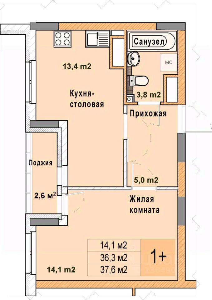 Просторная 1-комн. квартира с отделкой в ЖК "Кузнечиха город" на 18 этаже. Общая площадь: 37.6 кв.м. Высота потолков 2.7 м.