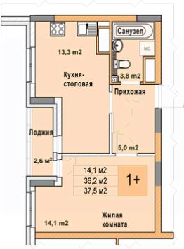 1-комн. квартира с отделкой в ЖК "Кузнечиха город" на 21 этаже. Общая площадь: 37.5 кв.м., жилая: 14.1 кв.м., площадь просторной кухни-столовой: 13.3 кв.м. Все окна выходят на одну сторону. В квартире одна лоджия, один совмещенный санузел. Высота потолков 2.7 м.