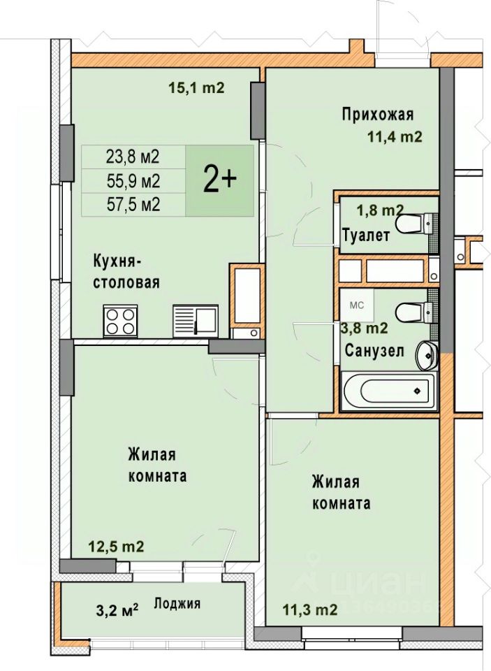 В жилых комнатах, кухне и прихожей — обои нейтрального оттенка, белые межкомнатные двери без стекол. Пол в жилых комнатах — ламинат под дуб, в кухне и прихожей — плитка. Натяжные потолки во всех помещениях. Стены и пол в ванной и санузле будут отделаны керамогранитом, в ванной установлен полный комплект сантехники, включая акриловую ванну с экраном и смесителем, тумбу для хранения под раковиной, зеркало с подсветкой. Застройщик также позаботился и о деталях, поэтому все инженерные коммуникации, стояки водоснабжения и канализации будут скрыты декоративными коробами. #ZmfOoT