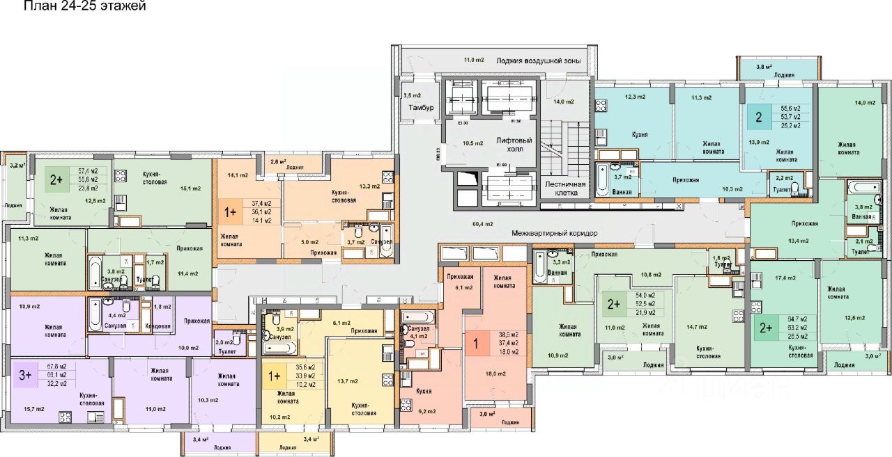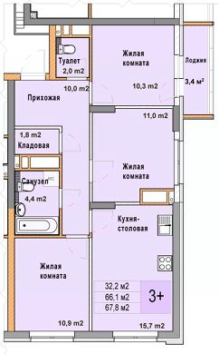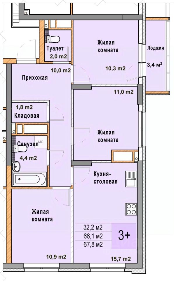 3-комн. квартира с отделкой в ЖК "Кузнечиха город" на 24 этаже. Общая площадь: 67.8 кв.м. Высота потолков 2.7 м.