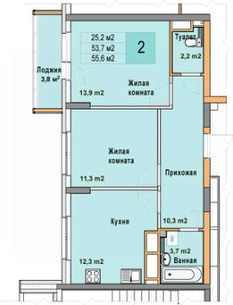 2-комн. квартира с отделкой в ЖК "Кузнечиха город" на 25 этаже. Общая площадь: 55.6 кв.м. Высота потолков 2.7 м.