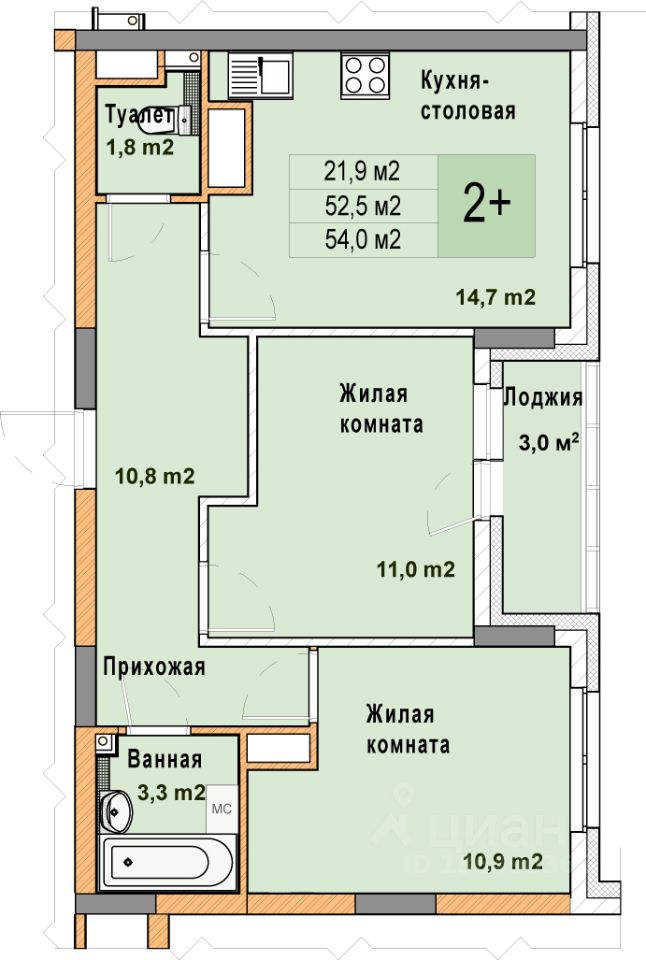В жилых комнатах, кухне и прихожей — обои нейтрального оттенка, белые межкомнатные двери без стекол. Пол в жилых комнатах — ламинат под дуб, в кухне и прихожей — плитка. Натяжные потолки во всех помещениях. Стены и пол в ванной и санузле будут отделаны керамогранитом, в ванной установлен полный комплект сантехники, включая акриловую ванну с экраном и смесителем, тумбу для хранения под раковиной, зеркало с подсветкой. Застройщик также позаботился и о деталях, поэтому все инженерные коммуникации, стояки водоснабжения и канализации будут скрыты декоративными коробами. #Zmf01B