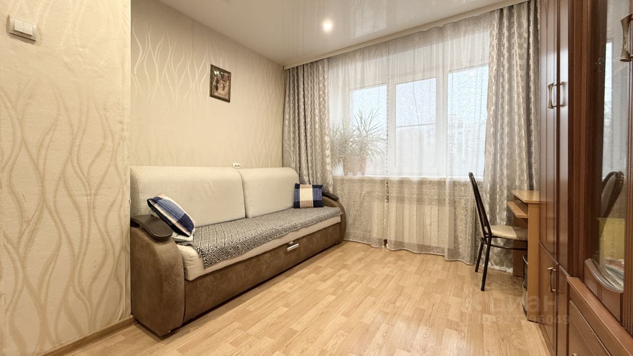 Площадь составляет 22кв.м, 4 этаж пятиэтажного дома 1975года постройки. Состояние квартиры хорошее, жилое: натяжные потолки, окна ПВХ, ламинат на полу, качественные входная и межкомнатные двери.