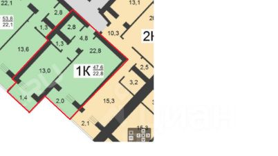 22,8 м²