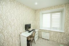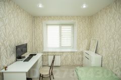 Комната оборудована всем необходимым для повседневной жизни: уютная односпальная кровать гарантирует хороший сон, а компактный рабочий стол создают идеальное место для учёбы и творчества.
