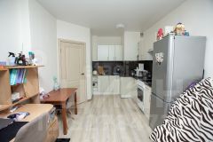 Планировка: Евро-формат (1-комнатная + кухня-гостиная). Просторная кухня-гостиная совмещена с зоной отдыха, отдельная спальня — отличное решение для пары или одного человека.