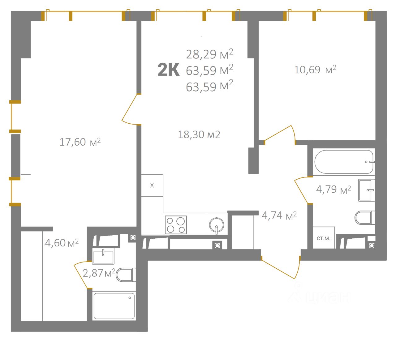 63,59 м²