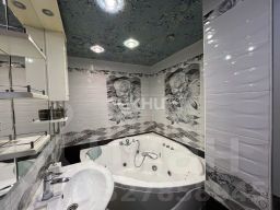 Санузел совмещенный, в кафеле, установлена джакузи. В квартире экологичное пробковое покрытие, в санузле и на лоджиях тёплый пол, натяжные потолки. Стены и полы выровнены, вся сантехника поменяна, установлены счетчики на воду и газ.