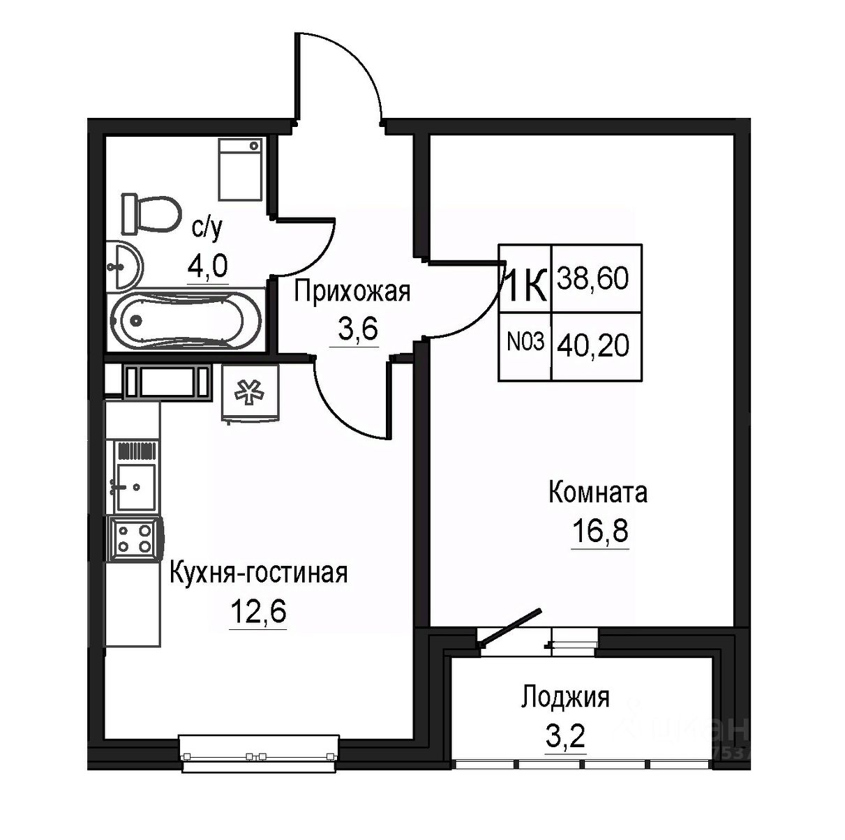 Общая площадь38,6 м²