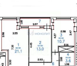 -две изолированные комнаты 21.1 и 13 кв.м