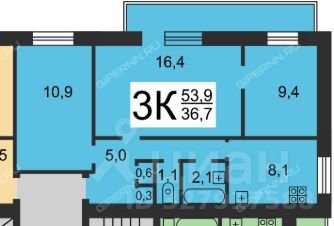 53,9 м²