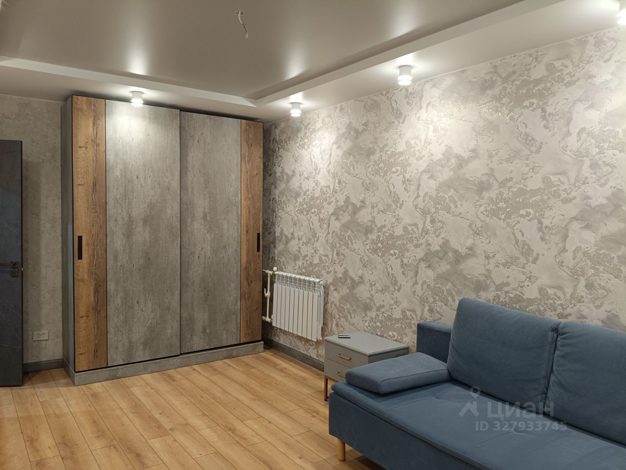 Удобная и современная перепланировка дает нам просторную спальню и кухню-гостиную. В одной комнате поклеены качественные обои, на полу