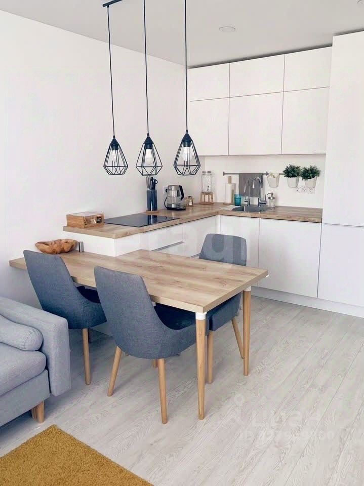 Планировка включает в себя две изолированные комнаты и большую кухню-гостиную, объединенные в единое функциональное пространство, что оптимально для комфортного проживания и приема гостей.
