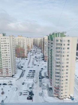 Квартира расположена на 17 этаже 19-этажного здания, что гарантирует обилие естественного света и панорамный вид на жилой комплекс.