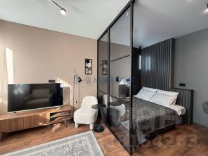 Эргономичная планировка: Грамотное зонирование — главная фишка этого объекта. Жилая комната разделена изящной нишей, которая позволяет выделить полноценную спальную зону. Это дает вам ощущение приватности: в нише размещены кровать и рабочий/туалетный стол. Гостиная зона остается светлой и просторной для приема друзей или отдыха.