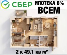 2-к квартира 49,1 м² | С ремонтом | Ипотека 6% по цене застройщика
