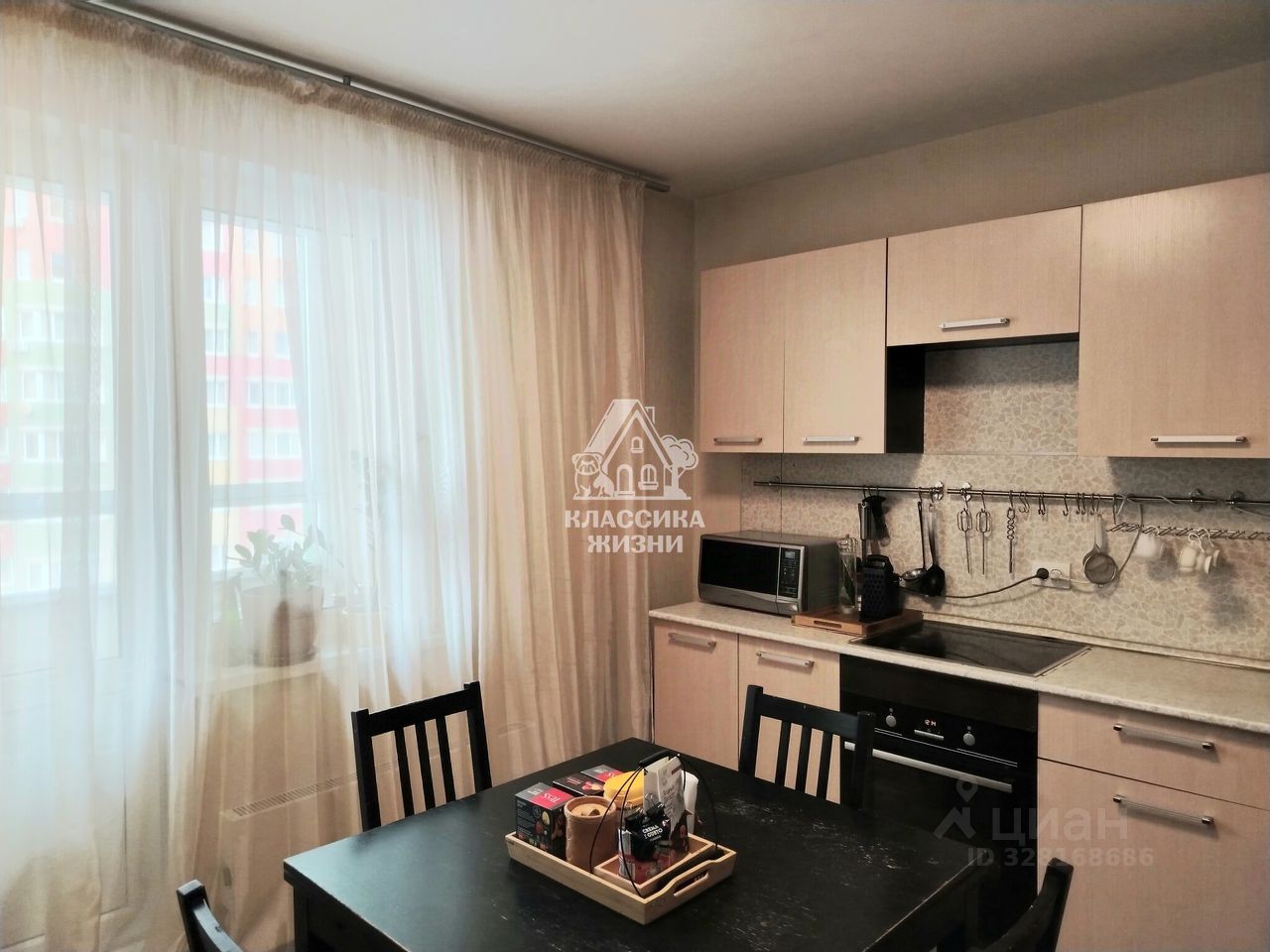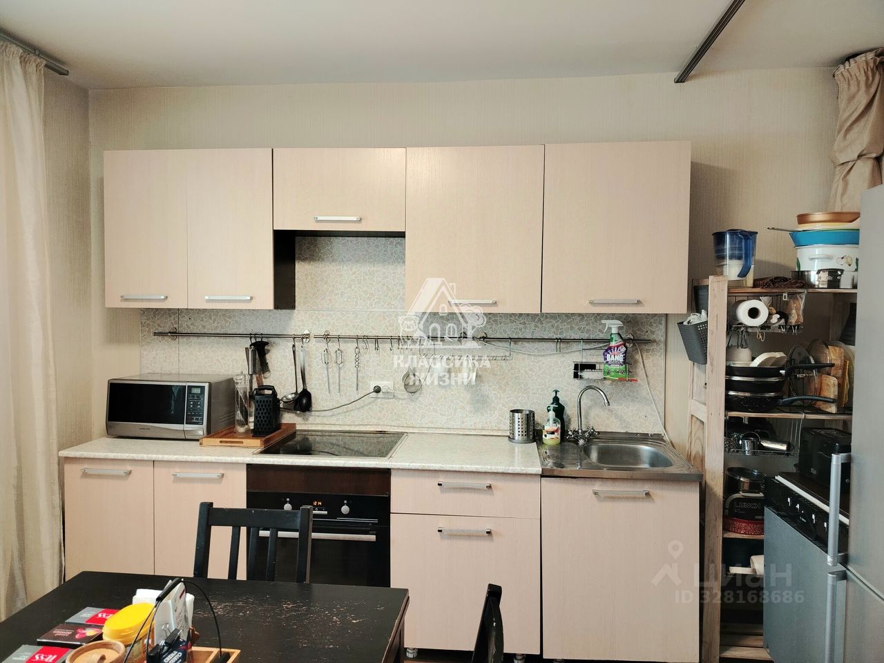 Новому собственнику остаётся кухонный гарнитур, два шкафа-купе.