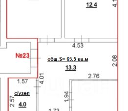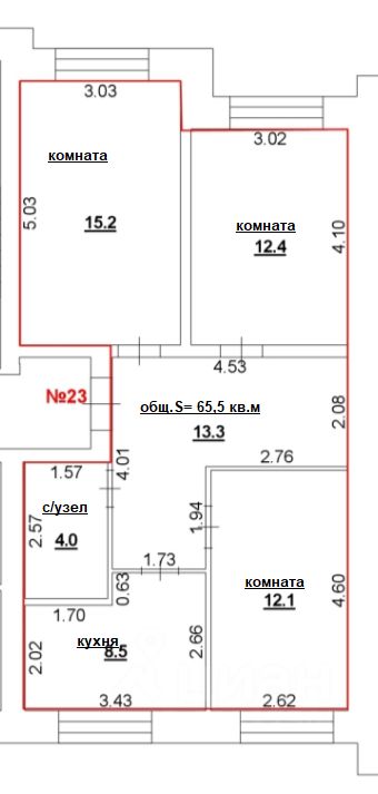 Общая площадь - 65,5 кв.м.