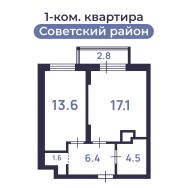 Продаётся просторная 1-комнатная квартира 46 кв.м. евроформата в новостройке ЖК Янтарь.