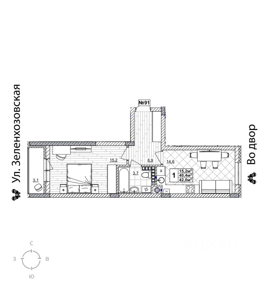 Продаётся 1-комнатная квартира в строящемся доме (дом 2), срок сдачи: II-кв. 2028, общей площадью 42 кв.м., на 4 этаже. Жилой комплекс "Смородина" - это комфортный квартал в Автозаводском районе Нижнего Новгорода вблизи улицы Зеленхозовская, который будет состоять из 10-ти четырехэтажных домов.