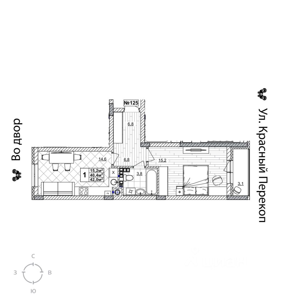 Продаётся 1-комнатная квартира в строящемся доме (дом 2), срок сдачи: II-кв. 2028, общей площадью 42 кв.м., на 3 этаже. Жилой комплекс "Смородина" - это комфортный квартал в Автозаводском районе Нижнего Новгорода вблизи улицы Зеленхозовская, который будет состоять из 10-ти четырехэтажных домов.