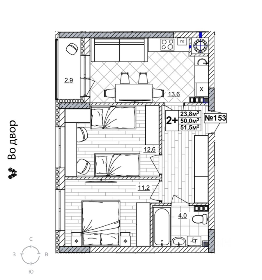 Продаётся 2-комнатная квартира в строящемся доме (дом 2), срок сдачи: II-кв. 2028, общей площадью 51.5 кв.м., на 3 этаже. Жилой комплекс "Смородина" - это комфортный квартал в Автозаводском районе Нижнего Новгорода вблизи улицы Зеленхозовская, который будет состоять из 10-ти четырехэтажных домов.