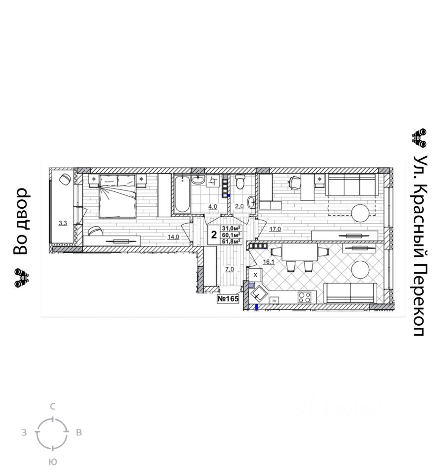 Продаётся 2-комнатная квартира в строящемся доме (дом 2), срок сдачи: II-кв. 2028, общей площадью 61.8 кв.м., на 4 этаже. Жилой комплекс "Смородина" - это комфортный квартал в Автозаводском районе Нижнего Новгорода вблизи улицы Зеленхозовская, который будет состоять из 10-ти четырехэтажных домов.