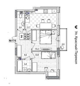 Продаётся 2-комнатная квартира в строящемся доме (дом 2), срок сдачи: II-кв. 2028, общей площадью 47.3 кв.м., на 2 этаже. Жилой комплекс "Смородина" - это комфортный квартал в Автозаводском районе Нижнего Новгорода вблизи улицы Зеленхозовская, который будет состоять из 10-ти четырехэтажных домов.