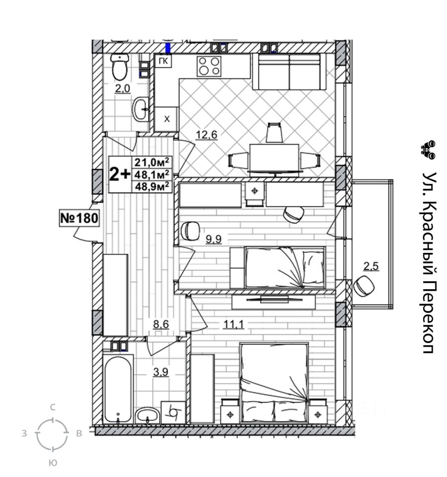 Продаётся 2-комнатная квартира в строящемся доме (дом 2), срок сдачи: II-кв. 2028, общей площадью 48.9 кв.м., на 2 этаже. Жилой комплекс "Смородина" - это комфортный квартал в Автозаводском районе Нижнего Новгорода вблизи улицы Зеленхозовская, который будет состоять из 10-ти четырехэтажных домов.