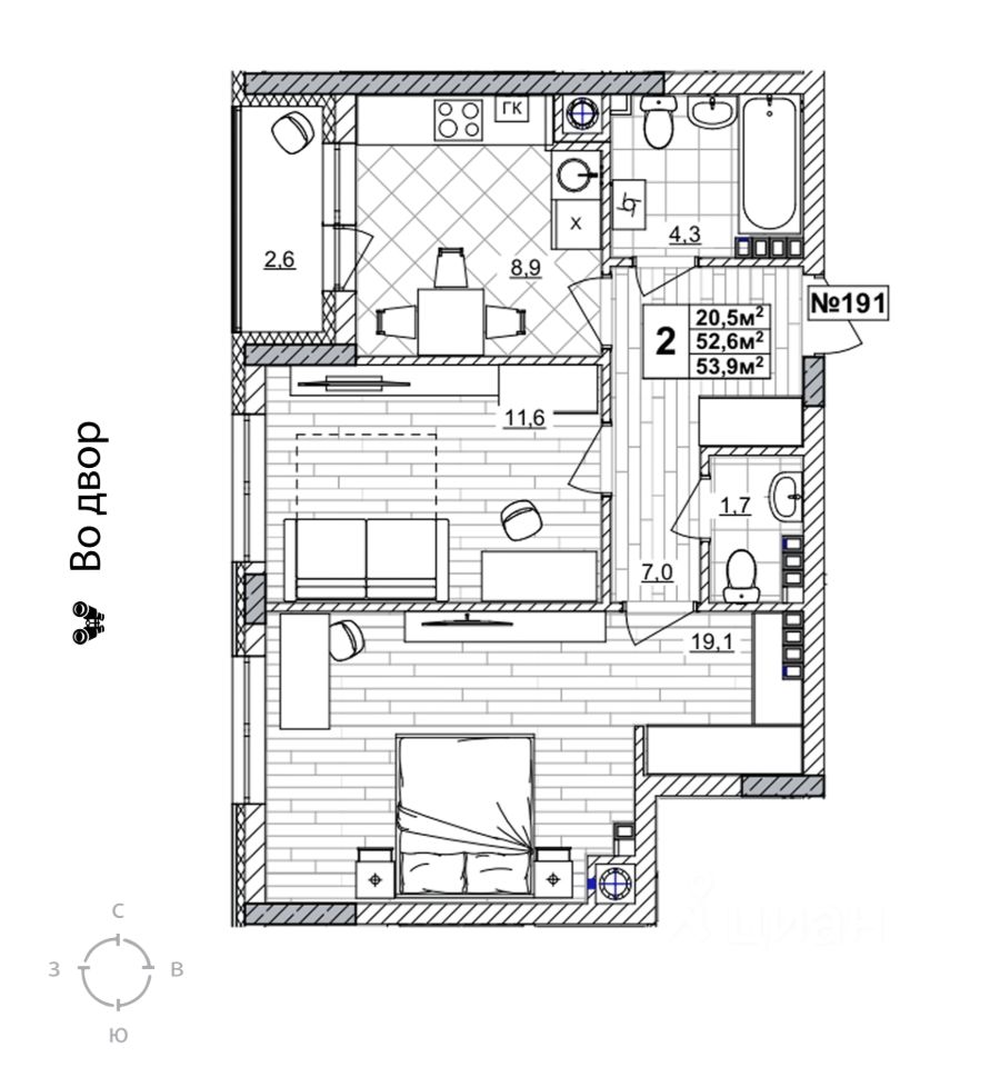 Продаётся 2-комнатная квартира в строящемся доме (дом 2), срок сдачи: II-кв. 2028, общей площадью 53.9 кв.м., на 4 этаже. Жилой комплекс "Смородина" - это комфортный квартал в Автозаводском районе Нижнего Новгорода вблизи улицы Зеленхозовская, который будет состоять из 10-ти четырехэтажных домов.