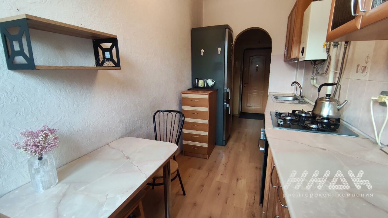 Квартира в отличном состоянии, на полу качественный ламинат, пластиковые стеклопакеты, полы и стены все выровнены, натяжные потолки, современные радиаторы отопления. В санузле современный кафель, новая сантехника. В квартире есть кладовка для вещей.