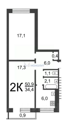 34,4 м²