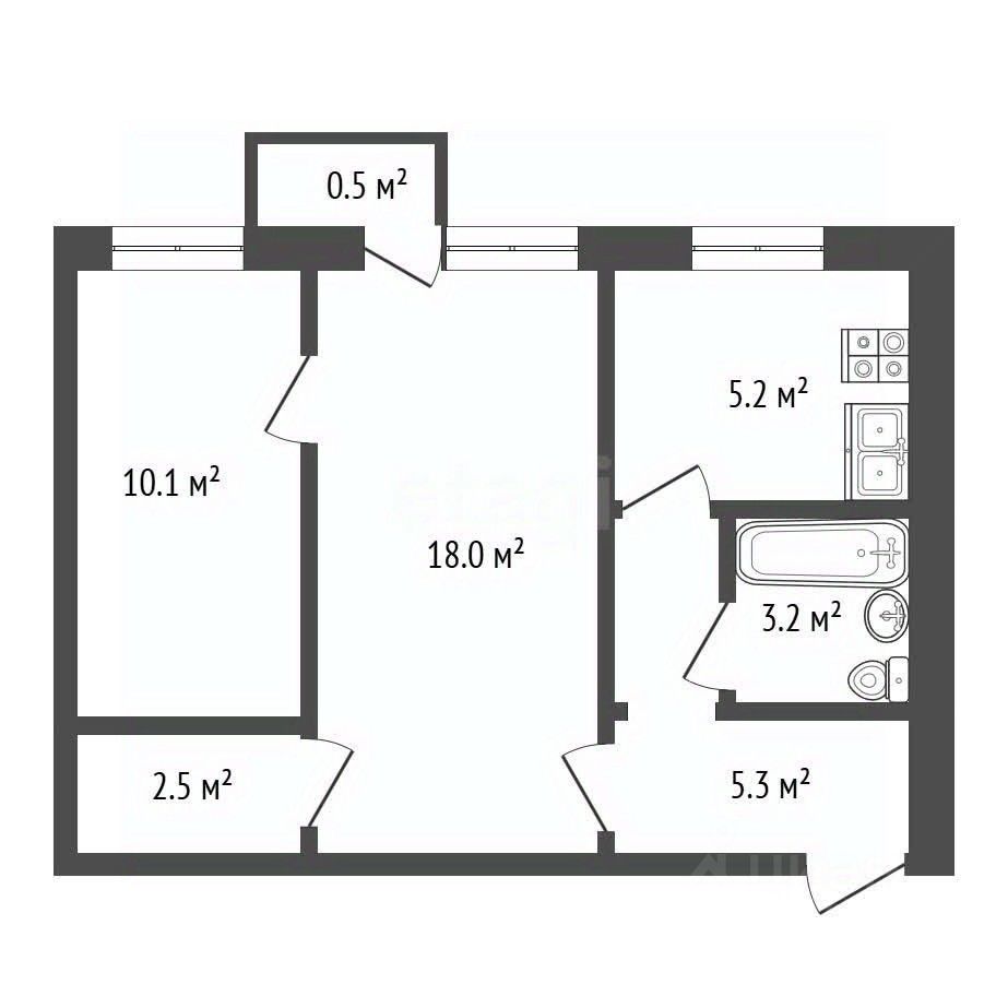 Просторная 2-комнатная квартира 44,3 м² с удобной планировкой в уютном районе