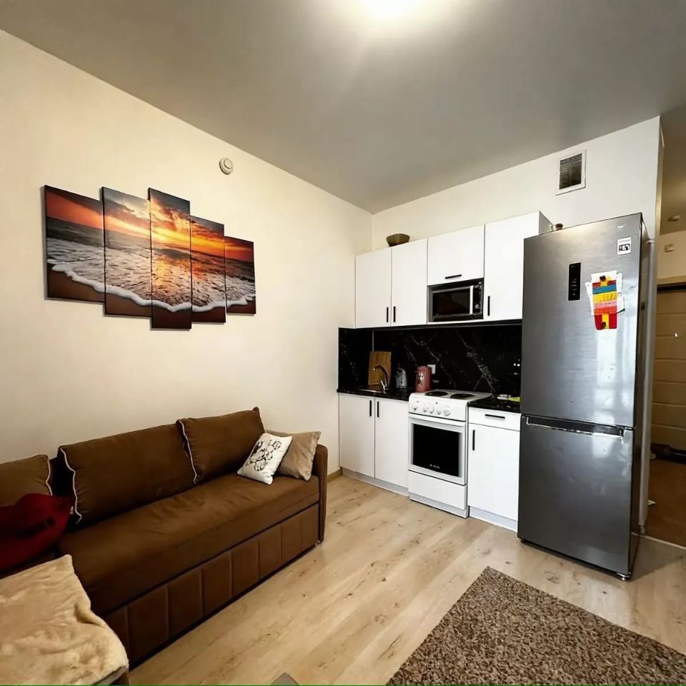 Просторная студия 24,9 кв.м. на 17 этаже с видом на лес. Благодаря этому, квартира светлая и просторная.