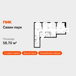 Продаётся 2-комн. квартира площадью 58,7 кв.м на 18 этаже 25 этажного дома (Корпус 10, Секция 1) проекта ПИК Савин парк. Светлый просторный подъезд на уровне земли, функциональная планировка, большие окна, c отделкой.